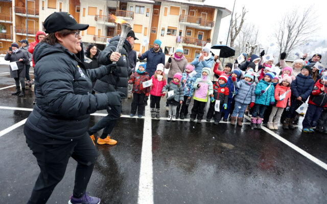 Los espectadores consideran que los voluntarios de la ley y los atletas de las Olímpicas Especiales llevan la llama de la esperanza en Bardonecchia, Italia, en la etapa final de la antorchas por delante de los Juegos de Invierno de los Juegos Olímpicos Especiales en Turín. (Simone Castrovillari/Special Olympics International)