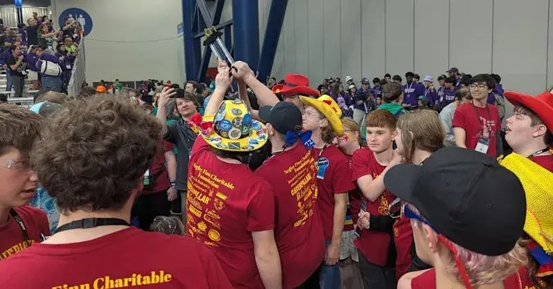 El equipo de robótica de la Escuela Secundaria McCutcheon, primer equipo 4272: Robótica Maverickganó el título del campeonato en el Primera competencia de robótica en Houston durante el fin de semana.