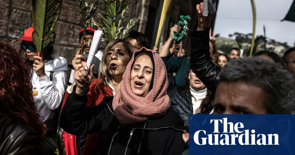 A El coro de la Iglesia Católica tiene hojas de palma como parte de la devoción de la Cuaresma tradicionales en la Iglesia del Nacimiento de Nuestra Señora, también conocida como Gereja Katolik Kelahiran Santa Perawan Maria, en Surabaya