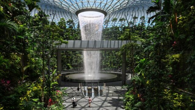 La mayoría llegará al gigantesco centro comercial de joyas de 10 pisos, con su pisada de 80 millones de personas en 2024. Luego están los múltiples jardines de interior (incluido un centro de mariposas) y el vórtice de lluvia de 40 metros de alto, la cascada interior más grande del mundo (alrededor de 130 pies).