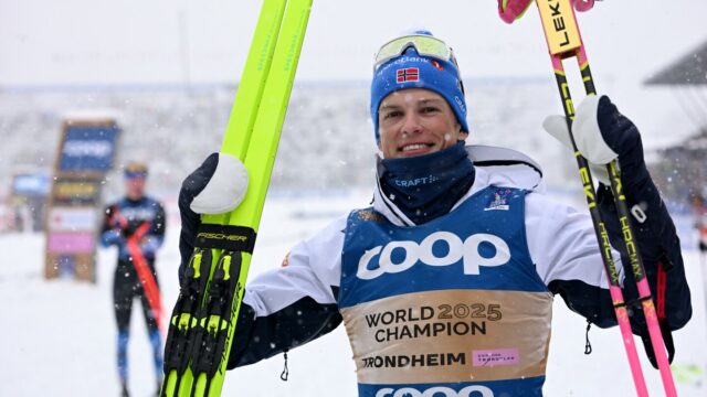 Se alejó del sueco William Poromaa en el sprint final en 2.1 segundos en el Granasen Ski Center en Trondheim, a unos 10 minutos de donde vive. El comentarista Chad Salmela dijo que se esperaba que alrededor de 50,000 fanáticos se alinearan en el curso.