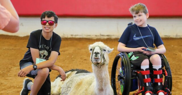 La llama más antigua del mundo disfruta reconfortante de niños con enfermedades crónicas en Carolina del Norte