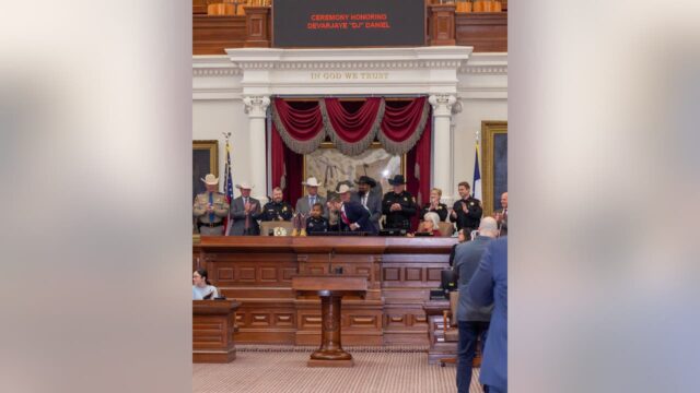 La Oficina del Sheriff del Condado de Tarrant, el Departamento de Policía de Fort Worth y el Departamento de Seguridad Pública de Texas recibieron un permiso especial para jurar en DJ en el piso de la Cámara de la Casa de Texas.