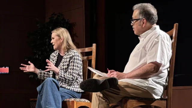Los estudiantes en la clase de Man Dino Lalli en la Universidad de Oklahoma, el presentador y reportero de News 9, Tevis Hillis, que compartieron información sobre la ética de la sala de redacción, los informes en el suelo y cómo navegar en un paisaje de medios que cambian rápidamente.