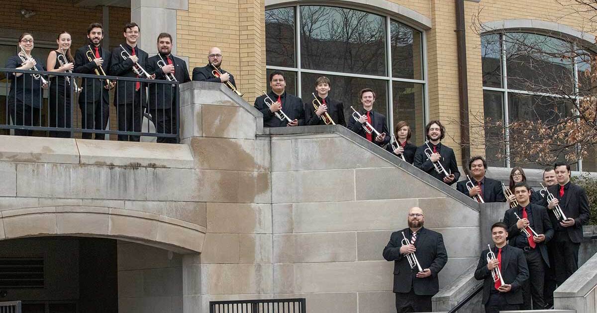El estudio de trompeta de 18 miembros y ambos conjuntos se presentarán en un concierto público gratuito a las 2 pm del domingo 23 de febrero en el Auditorio Shryock.