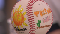 Los estudiantes de Innovation Academy en Oro Valley se aseguran de que los equipos se sientan bienvenidos. Pintaron bolas de béisbol con paisajes desérticos para dar a los jugadores como regalos.