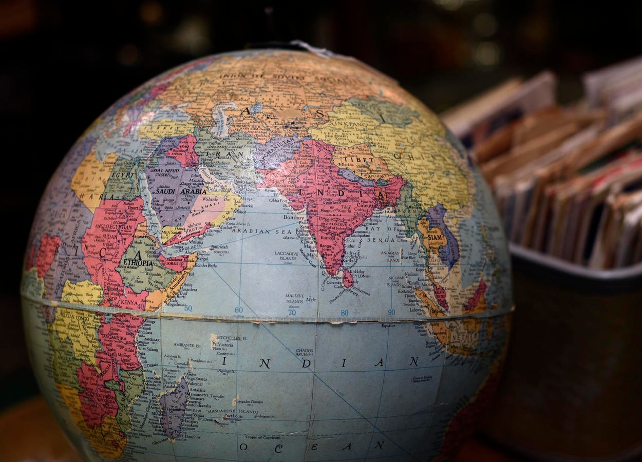 Santa Fe, Nuevo México – 9 de diciembre de 2019: un globo vintage del mundo en venta en una tienda de antigüedades … (+)