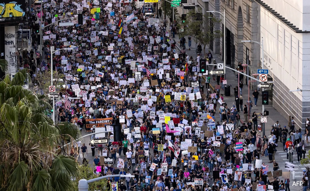 Los opositores a las políticas del presidente republicano, desde recortes de personal gubernamental hasta aranceles comerciales y erosionando las libertades civiles, se reunieron en Washington, Nueva York, Houston, Florida, Colorado y Los Ángeles, entre otros lugares.