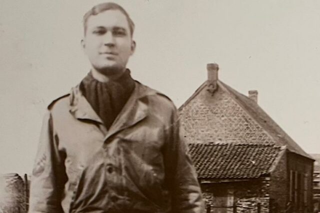 Mi padre fue reclutado en el ejército de los EE. UU. Como reportero que escribió en el terreno en la Alemania nazi. Sus habilidades organizativas fueron tales que puso el recuento del cuerpo por escrito y fue parte de la segunda ola de combatientes en apoyo de los desembarcos de Normandía en el Día D. Obtuvo elogios por su trabajo y podía recordar estar en la misma habitación que el general Patton y el general Eisenhower. Más tarde, de vuelta en los Estados Unidos, papá trabajó en un trabajo que solo su padre quería que hiciera y renunció a su trabajo de antes de la guerra en química para hacerlo. Puedo recordar que cuando era un padre, todavía reviviendo lo que debe haber sido los recuerdos de pesadilla de presenciar la lucha en la guerra, ya que se despertaría temblando y gritando. Aún así, el hombre católico fuerte y devoto que era, papá se levantó al día siguiente y en buen estado se fue al trabajo.